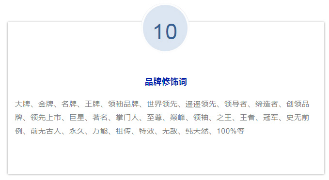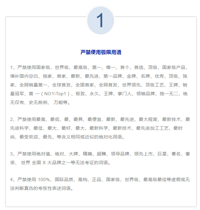 我們?cè)谥谱骶W(wǎng)站、小程序的商品標(biāo)題、頭圖、詳情頁、推文等商品信息的時(shí)候,除了制造賣點(diǎn)吸引消費(fèi)者外,還需要注意避開一些廣告法禁止的宣傳用語,避免中招。